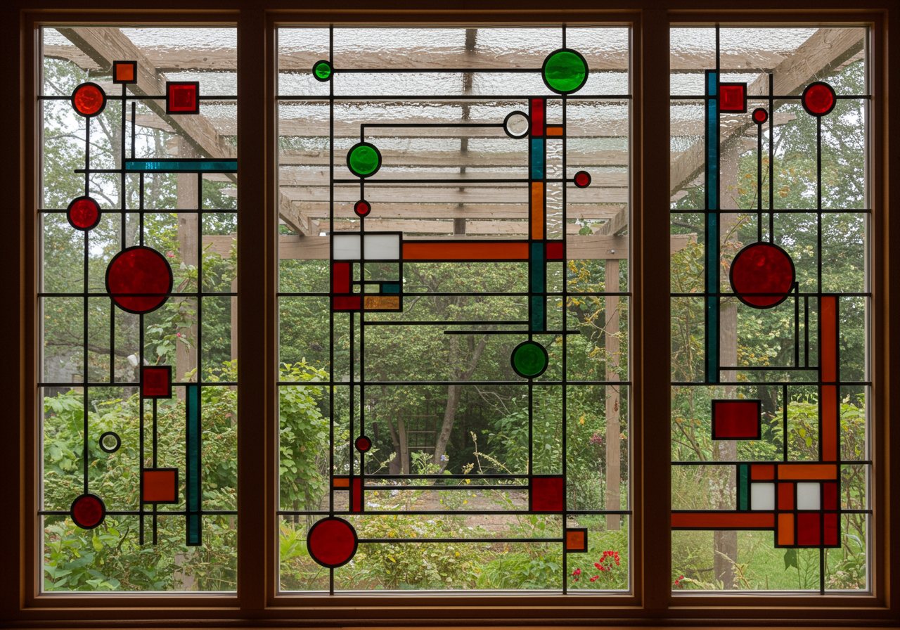 According to the Museum of Modern Art, “the [Avery Coonley Playhouse] windows were inspired by the sights of a parade, and their shapes abstracted from balloons, confetti, and even an American flag.” The original windows can be seen in museums around the world. While there are some original art glass windows remaining, museum-quality reproductions have been installed in this historic space.