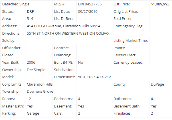 Below is a sneak preview of my new home listing in a “walk to” location in Clarendon Hills. This home was just built in 2006 and has been updated with lovely furnishings like Plantation Blinds, flagstone sitting patio and more. This home is a great value @ $1,089,993. For those who don’t know why my listings are priced at “93”, it was my old football number. I know, it’s a little corny but different is a good thing in marketing. Wouldn’t you agree?
