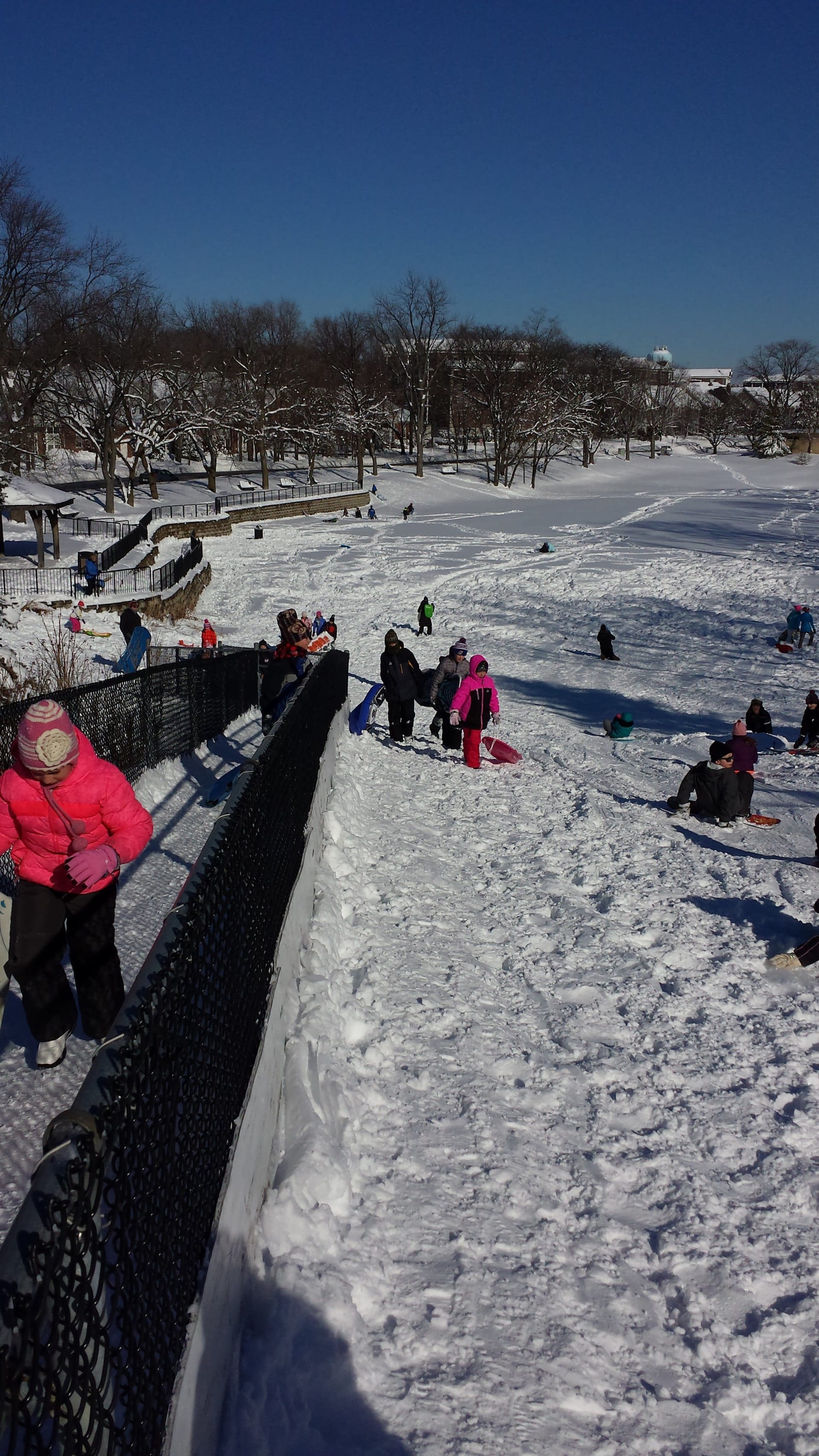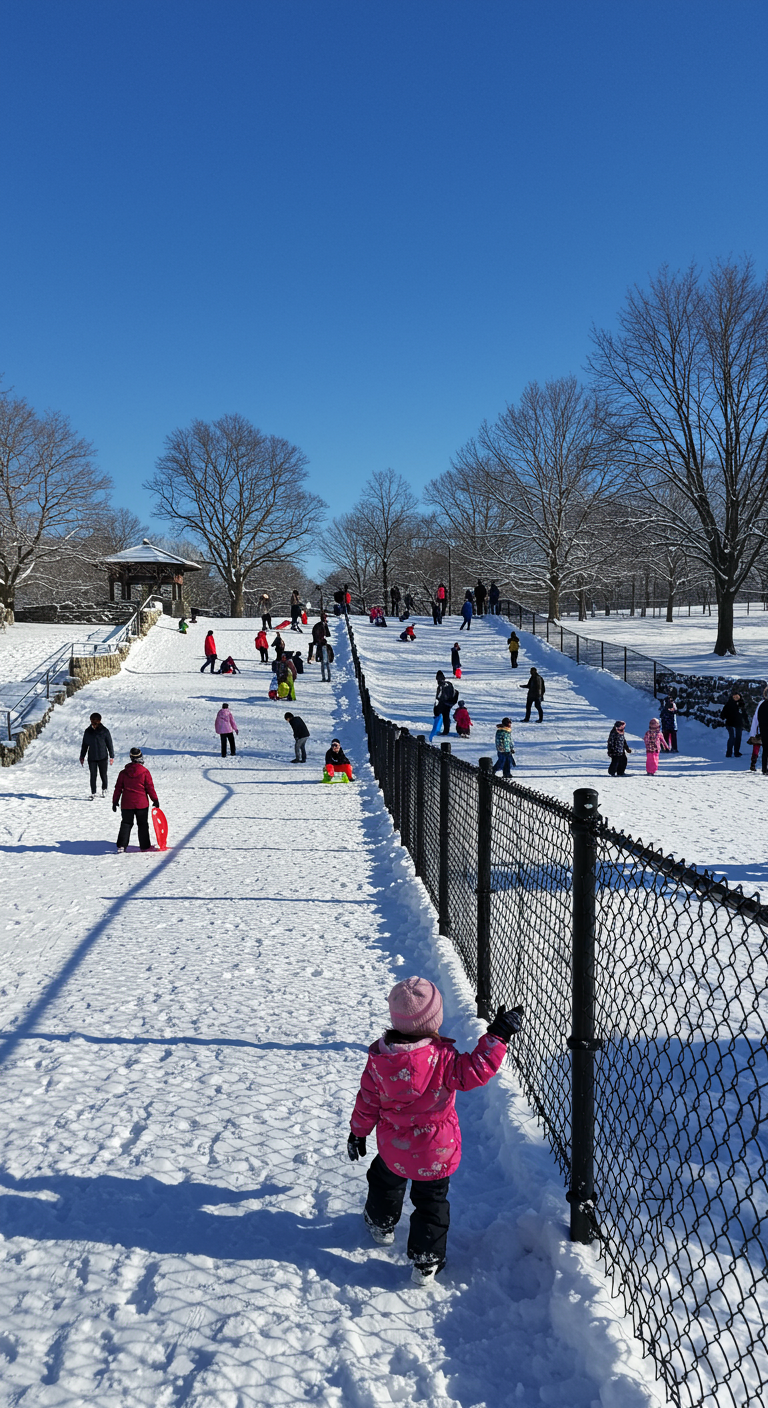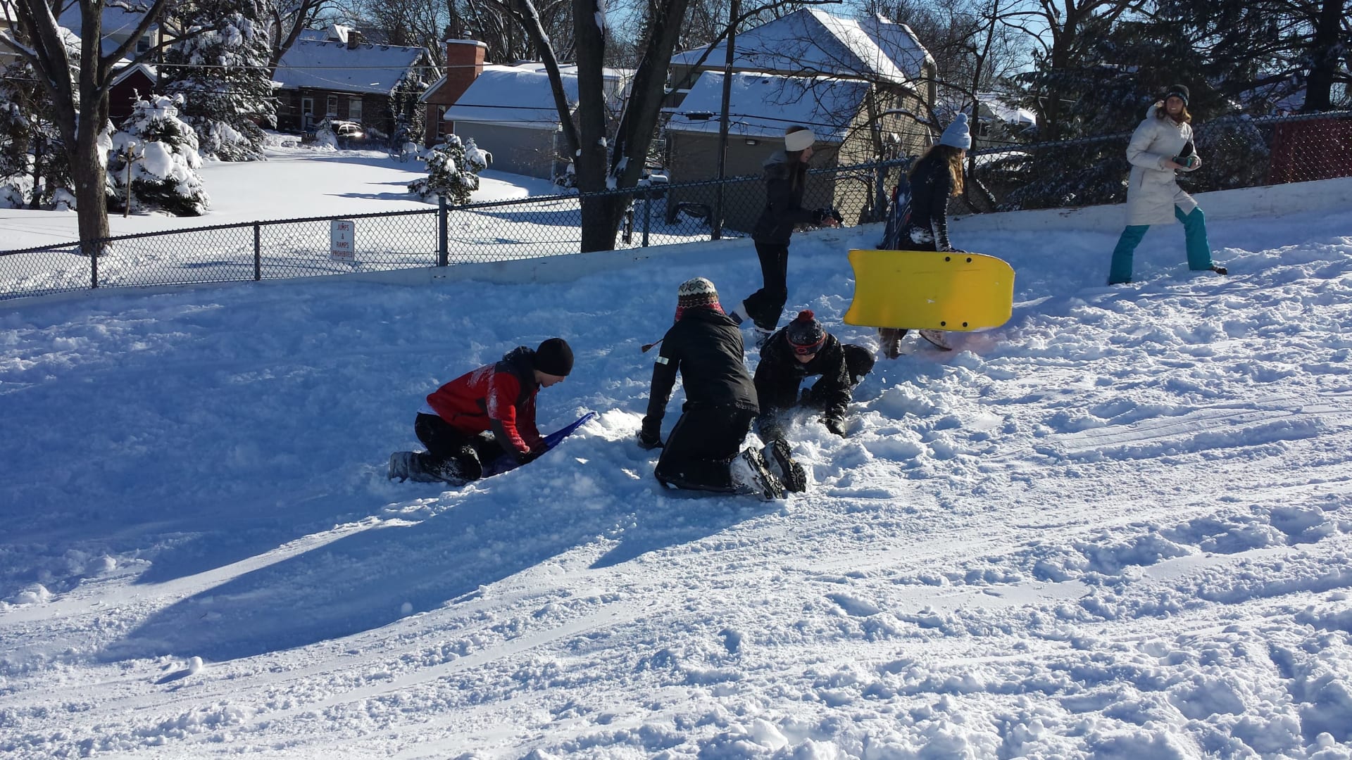 Holding tightly to the fence rail as they slipped their way up the icy path, the boys watched row after row of giggling toddlers in brightly colored snow pants sail down the hill. These babies didn’t really know how to sled; they took whatever path the hill chose for them! But the boys knew better.