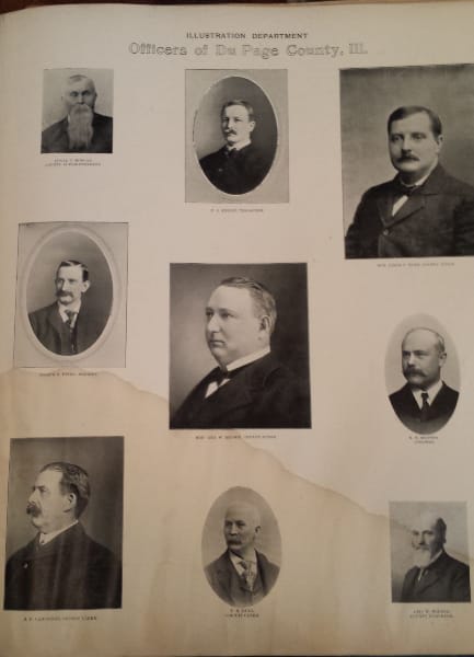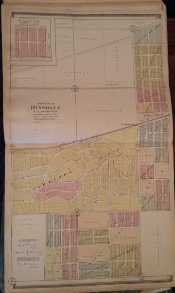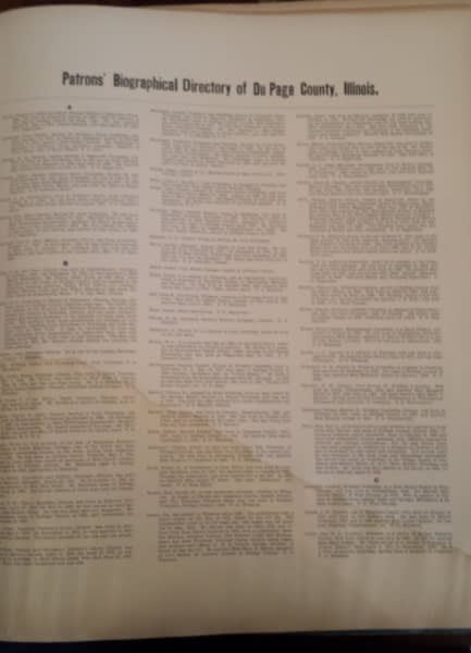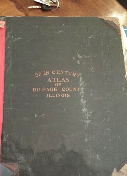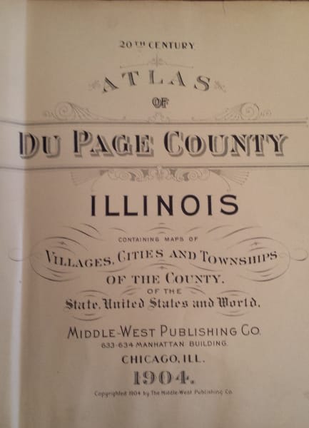 I count myself as extremely fortunate to have an old plat book as well as an original Atlas of DuPage County, circa 1904. This wonderful old atlas, now in its broken down binder, has many treasures inside.It has many photos of the original, significant buildings in the DuPage County as well as some of the more prominent residents along with their biographies. It’s a fascinating book to look through and find nuggets of our local history. I was fortunate to find this atlas in an old building that was being sold in Hinsdale. The atlas was a treasured possession of my wife Amy’s uncle, Jack Kuhlman, who began his law practice with her grandfather, John R. Collis. John was an attorney in Hinsdale for many years.