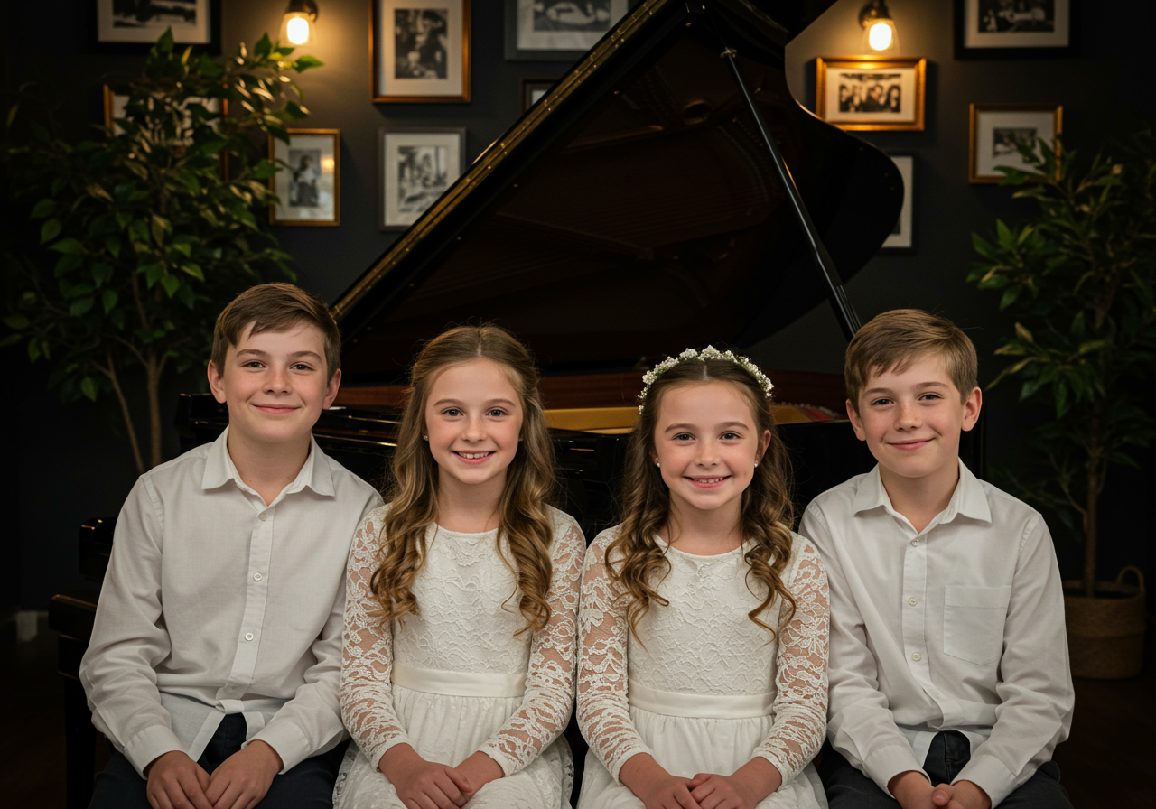 At the end of a piano recital we recently attended, my mom (Ra-Ra known by the children) found her way to the front of the pack and got just the shot of all shots. All 4 children were sitting on the piano bench grinning from ear to ear and posing for a very proud grandma. And their other grandmother (Nonnie), who hardly ever misses an event, gave them all hugs of approval.
